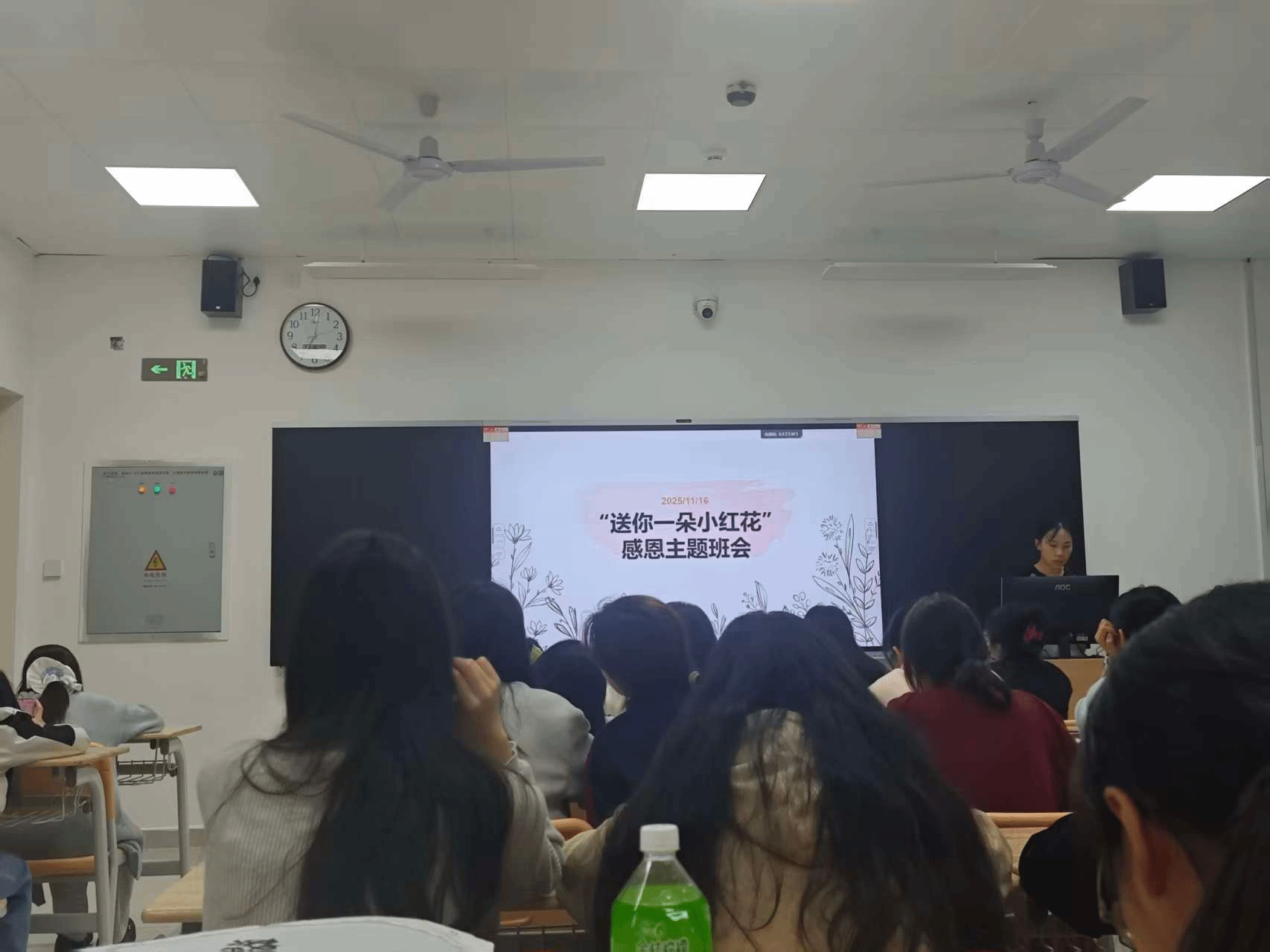 2025级中康1班、2班、3班及健身1班辅导员陈玉玫以“你最近一次说‘谢谢’是因为什么事”开启互动,同学们踊跃分享身边温暖瞬间,食堂阿姨多添的一勺菜、生病时室友帮忙打水买药、父母每周准时的问候电话。点滴细节汇聚成暖流,唤起全场的共鸣与感动。