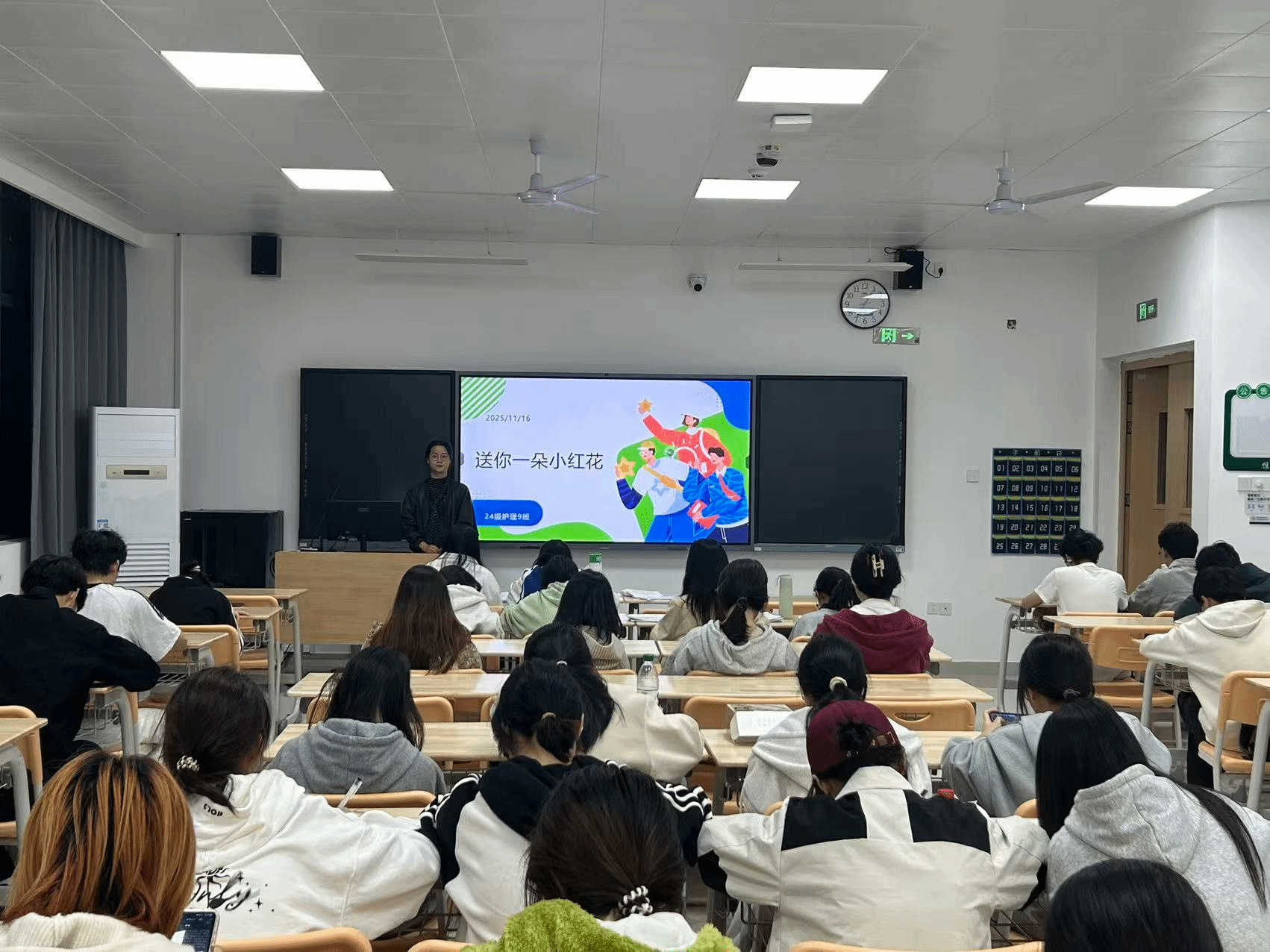 2024级护理6班辅导员付怡静以“小红花”的温暖意象为切入点,围绕感恩同行伙伴、感恩父母师长等守护者、感恩努力成长的自己三个维度,分享大学时光里的细碎温暖与默默付出,引导同学们看见身边的善意与支持,懂得珍惜当下的美好,学会将感恩藏于心底、付诸行动,在成长路上传递温暖与善意。
