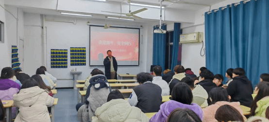 随后,周林强重点强调了元旦假期的各项安全注意事项,涵盖交通出行、宿舍防火防盗、防范诈骗及个人健康防护等方面,叮嘱同学们切实增强安全意识,确保度过一个平安、愉快的假期。