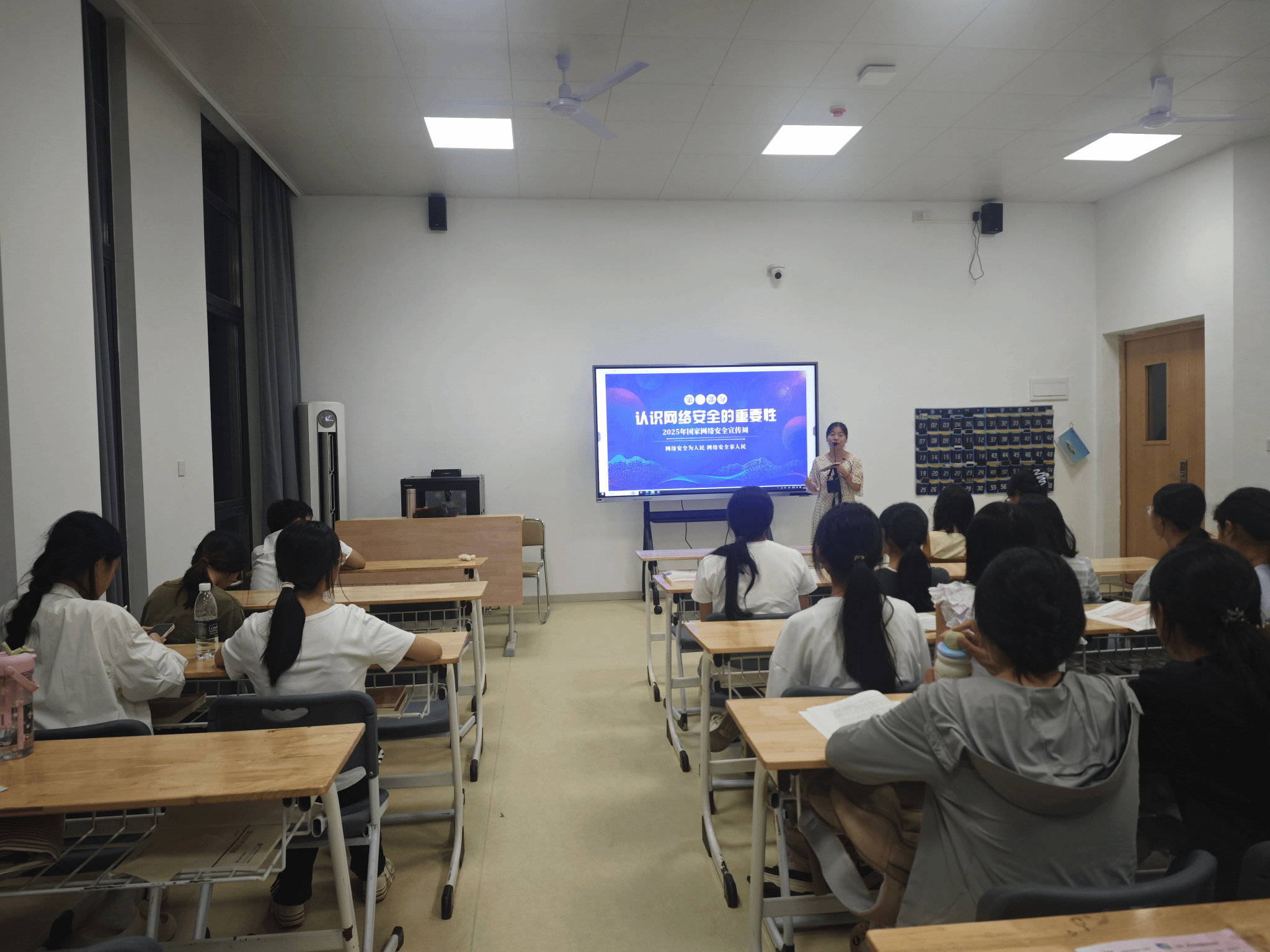 此外,陈玉玫精心组织了 “寝室文明与安全教育” 主题教育活动。她围绕寝室卫生、用电安全、人际关系等重要方面进行了深入讲解。通过引用真实案例,她郑重提醒同学们时刻保持警惕,切实防范网络电信诈骗,做到不轻信、不转账、不泄露个人信息,全力守护自身财产安全。