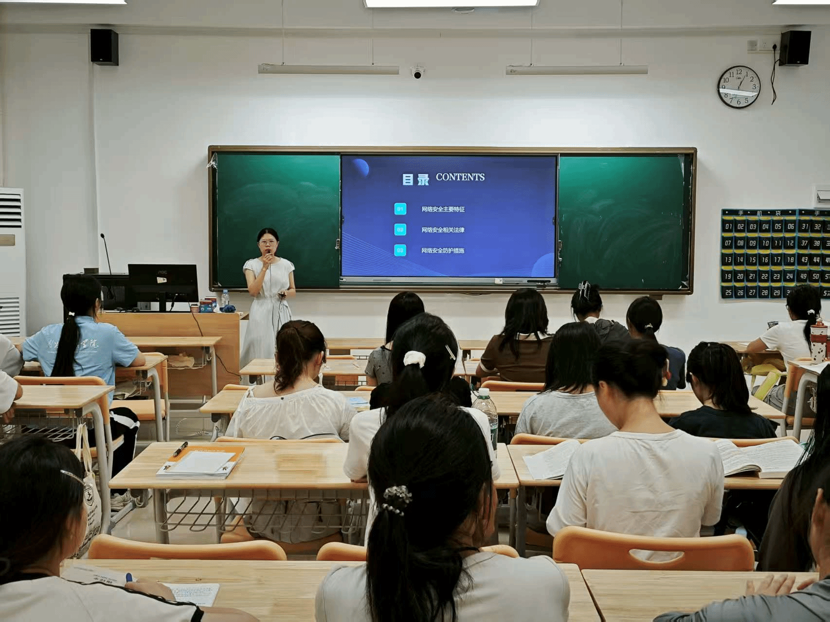 2024级助产1班辅导员彭钰媛通过组织学生观看史料、讲述英雄故事,激发了大家的民族自豪感和历史责任感,同学们一致表示要铭记历史,自强不息,为筑牢国家安全的青春长城贡献力量。同时,为积极响应国家网络安全宣传周号召,班级还召开了“网络安全为人民,网络安全靠人民”主题班会。彭钰媛强调网络空间的开放性、共享性与风险性并存,详细介绍了《中华人民共和国网络安全法》等法律保障,并普及了密码管理、信息甄别等实用防护技巧,有效提升了同学们的网络安全意识和防护能力。