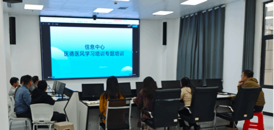 培训紧扣立德树人根本任务和教育教学规范要求,结合信息中心工作实际,系统阐述了医德医风的核心要义与行为准则。会议强调,优良的医德医风是提升育人质量、构建和谐师生关系、促进学院内涵式发展的重要保障。会议要求全体员工立足信息技术岗位,筑牢服务意识,恪守职业操守,将医德医风建设要求融入日常工作,体现在保障教学科研系统稳定运行、服务师生信息化需求的各个环节。