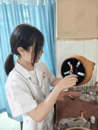 实践感悟:这次志愿服务让我近距离接触中医适宜技术,在实践中体会到中医的独特魅力。尝试拔针、拔罐和参与督脉灸、三伏贴,不仅让我掌握了要领,更直观理解了“治未病”的理念。看到患者因治疗而放松,我深受触动,也更加坚定了学习和传承中医的信念。