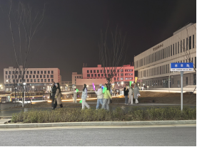 当晚 18 时,校园内灯光与荧光手环交相辉映,将夜色点缀得格外灵动。本次活动创新采用 “线下追逐 + 线上定位” 的融合模式,参与学生通过随机分组形成 “猫” 与 “老鼠” 两大阵营,在校园指定活动区域内展开智慧与速度的双重比拼。追逐过程中,“老鼠” 们灵活穿梭、巧妙躲藏,“猫” 队成员默契配合、精准围堵,既有电光石火的追逐瞬间,也有互帮互助的暖心场景。欢呼声、笑声此起彼伏,为静谧的校园夜色注入了满满的青春活力。
