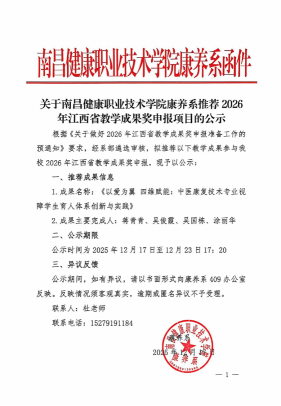 Copyright版权所有:南昌健康职业技术学院 康养系 地址:江西省南昌市红谷滩区复兴大道西3999号