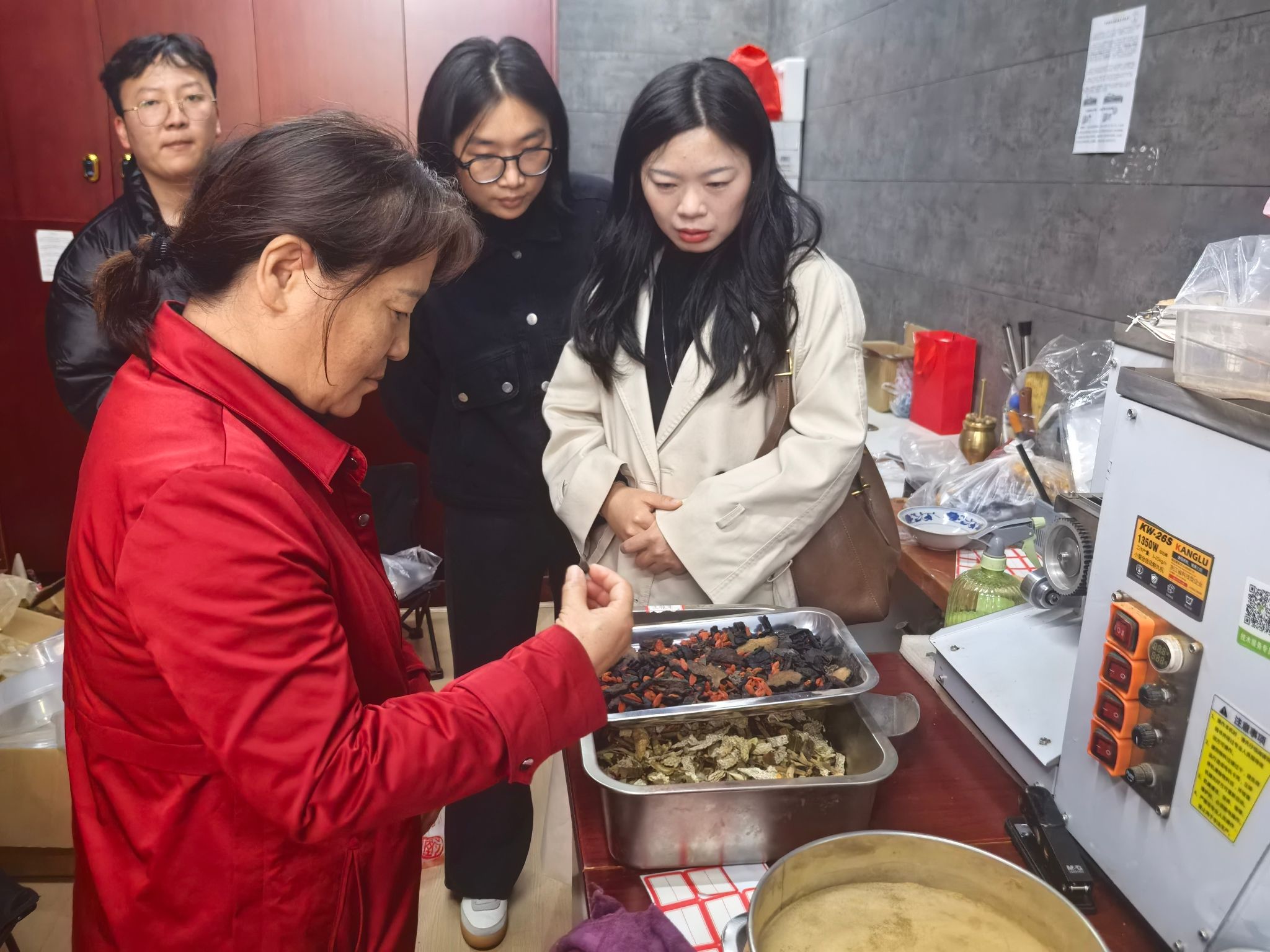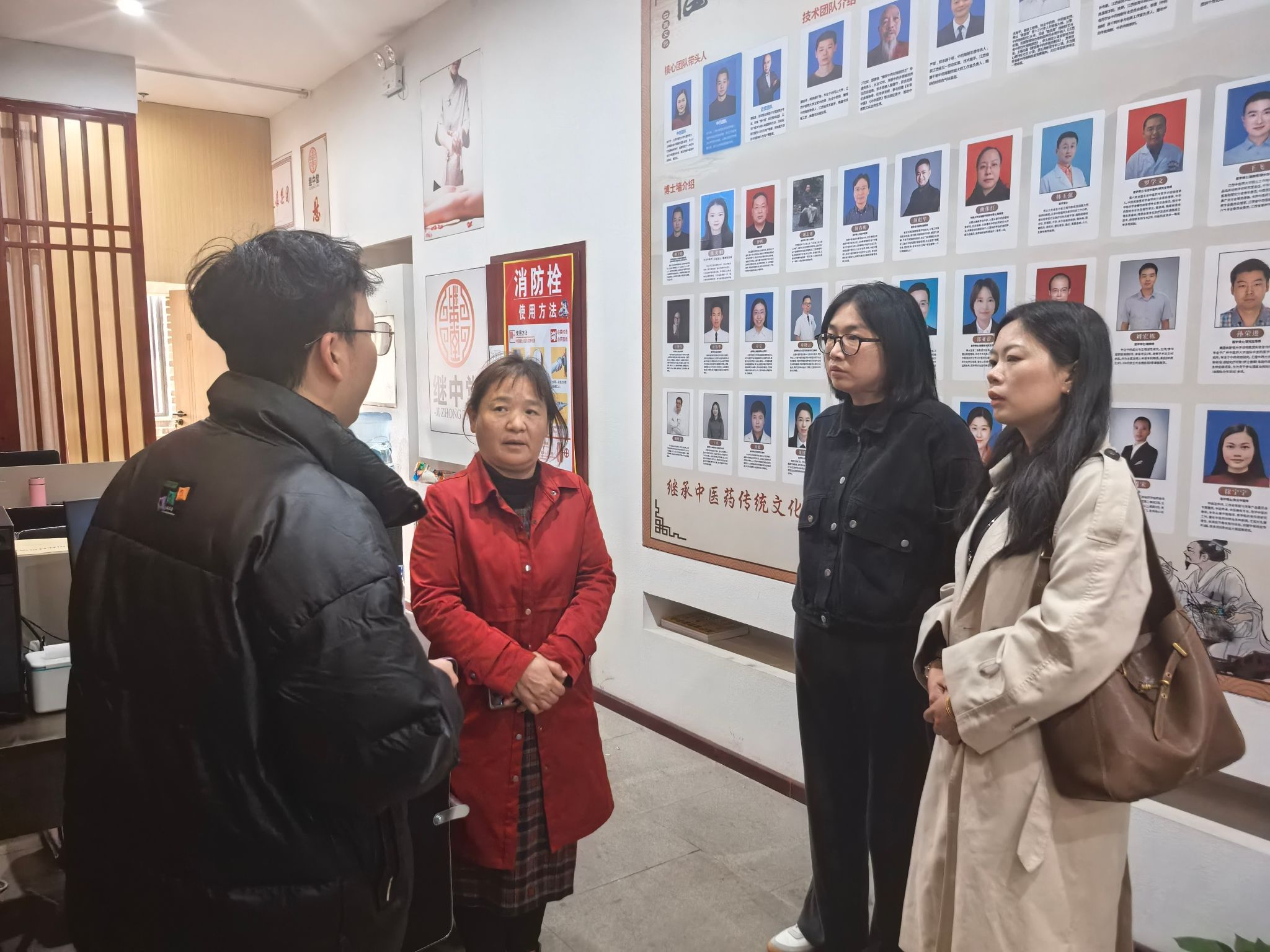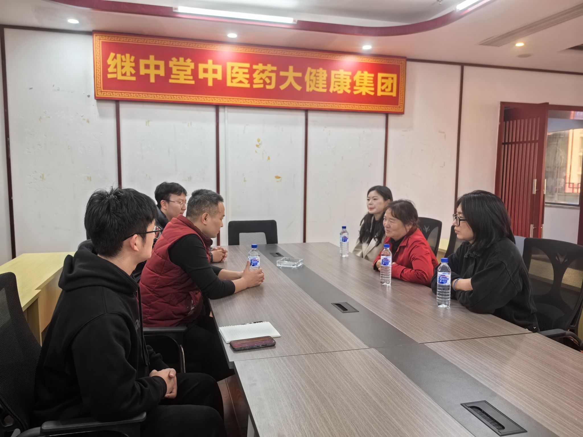 在继中堂相关负责人的陪同下,学院一行首先参观了企业的中药炮制室、中医诊疗室、理疗室、药房及研发部等功能区域,全面了解继中堂在中医药文化传承、企业发展模式以及人才培养机制等方面的实践成果与创新理念。通过实地走访,对继中堂将传统炮制技艺与现代健康服务相融合的发展路径有了更加深入的认识。
