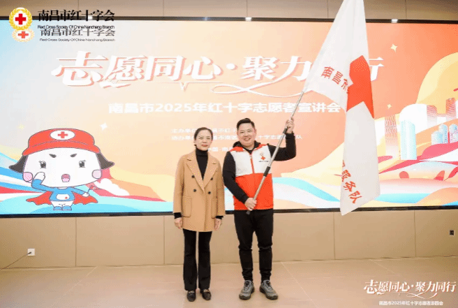 本次活动在南昌医学院图书馆报告厅正式启动,280余名来自各县区及市直属服务队的志愿者代表齐聚一堂,共庆节日。活动中,南昌医学院临床医学院党委副书记南今娘首先致欢迎辞。随后,南昌市红十字会党组书记、常务副会长潘凌为新成立的“洪城急救侠”志愿服务队授旗。庄严的授旗仪式展现了红十字志愿服务队伍的壮大与传承。