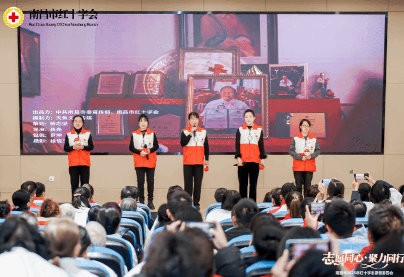 在志愿故事分享环节,三位讲述者带来了感人至深的故事:南昌医学院学生黄钰晴、张芷薰分享了她们参与校园志愿服务的青春担当;“江西省红十字博爱大使”沈继奋分享其多年始终以积极乐观的心态残疾助人的感人事迹;南昌市第一医院护士兰晶深情讲述了国际成就奖、南丁格尔奖获得者章金媛半个世纪大爱坚守的动人故事。三个不同视角的故事,共同构筑了南昌志愿服务的生动图景。
