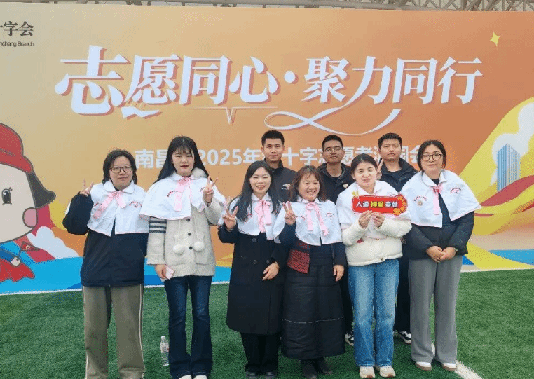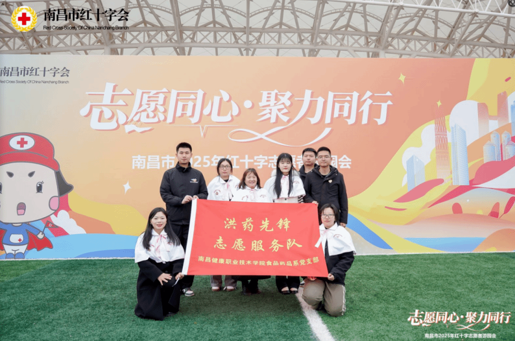 12月5日第40个国际志愿者日,南昌健康职业技术学院食品药品系党支部书记带领“洪药先锋”志愿服务队前往南昌医学院九龙湖校区,参加由南昌市红十字会主办、南昌市南医精诚红十字志愿服务队协办的南昌市2025年“志愿同心、聚力同行”红十字志愿者游园会。