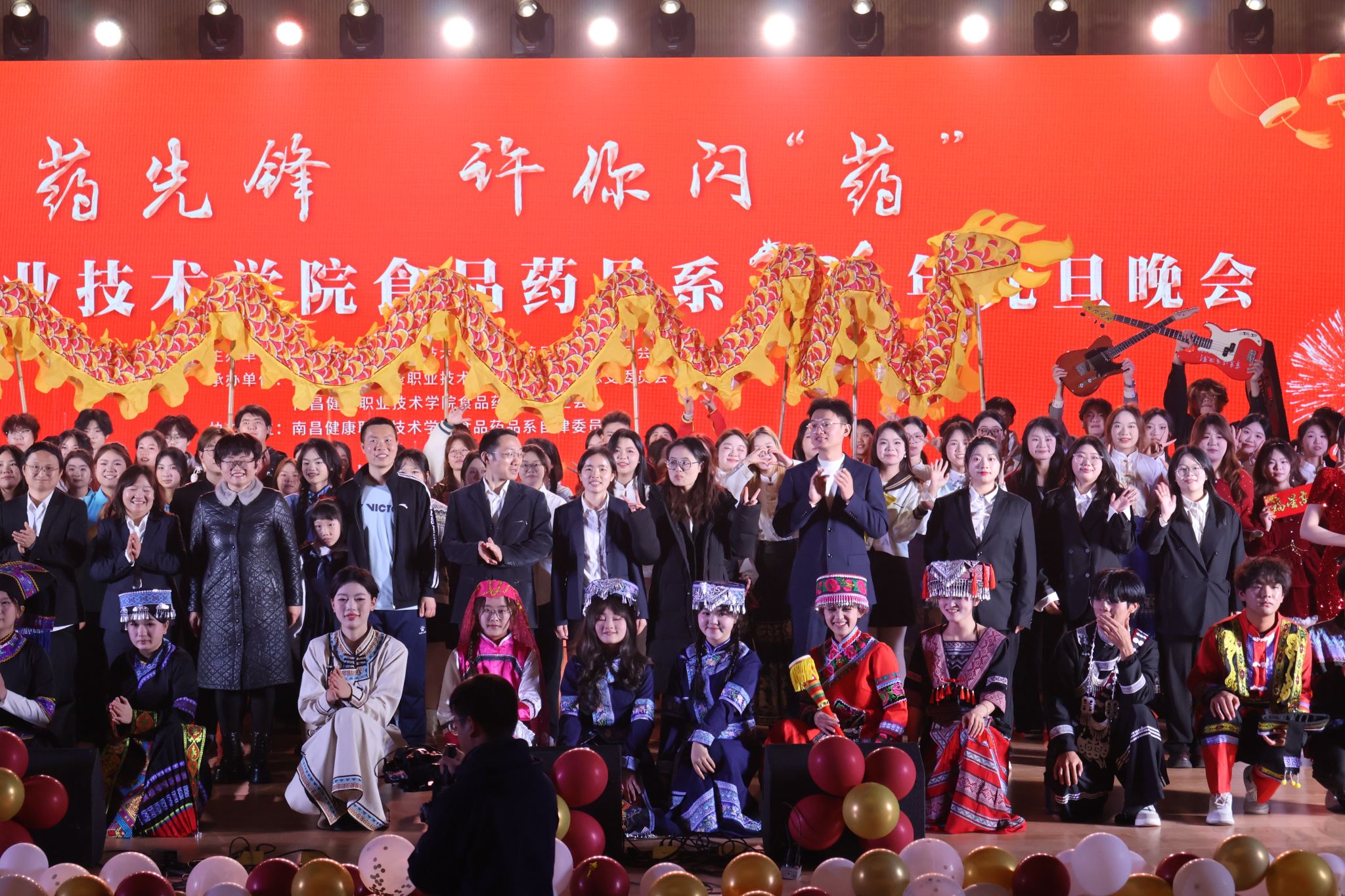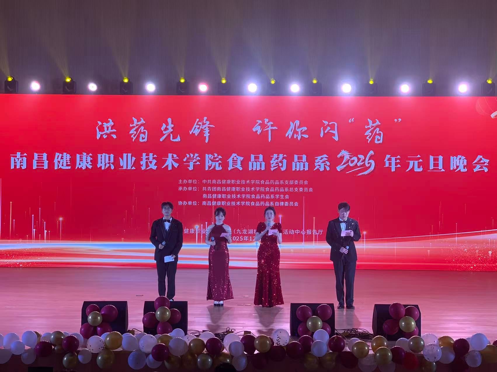 辞旧迎新启华章,药苑青春绽芳华。12月30日晚,南昌健康职业技术学院(九龙湖校区)学生活动中心报告厅灯火璀璨、暖意融融,“洪药先锋 许你闪‘药’”食品药品系2026年元旦晚会在此隆重举行。学院党委委员、纪委书记卢涛,党委委员、副院长陈叔儒,党委委员、副院长康德,学校部分职能部门负责人、部分四系三部负责人及教职工代表与食品药品系全体师生欢聚一堂,共赏视听盛宴,喜迎新年到来。本次晚会由食品药品系党支部主办、食品药品系团总支、学生会承办,以四大篇章串联起青春与梦想、责任与担当的奋进旋律。