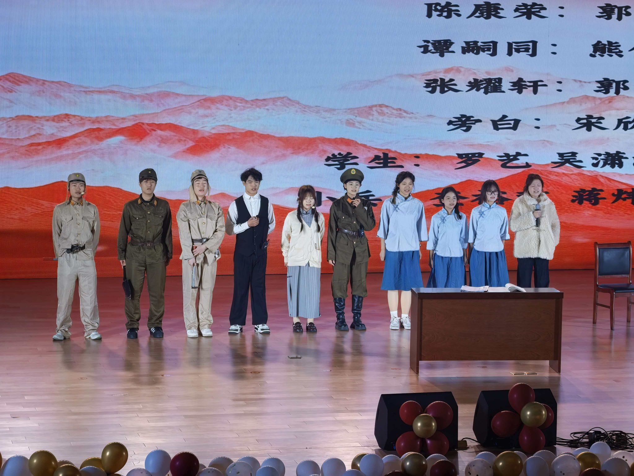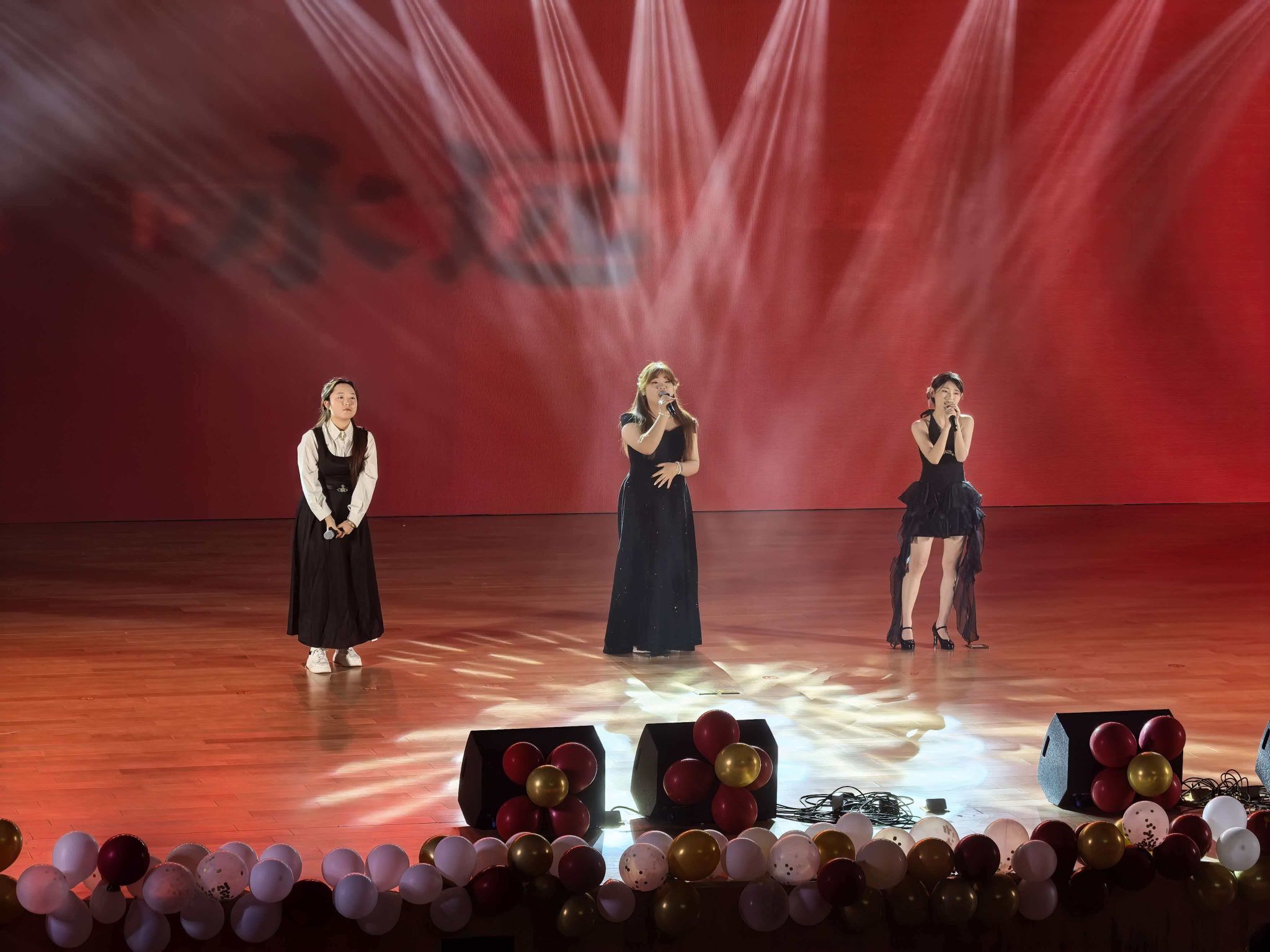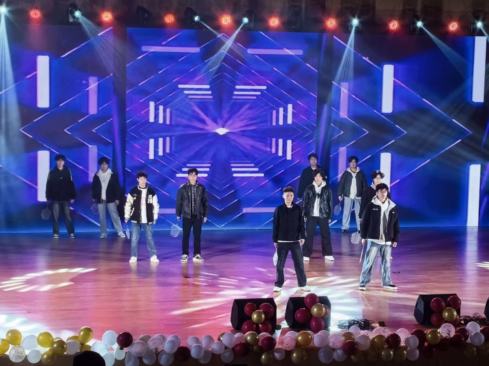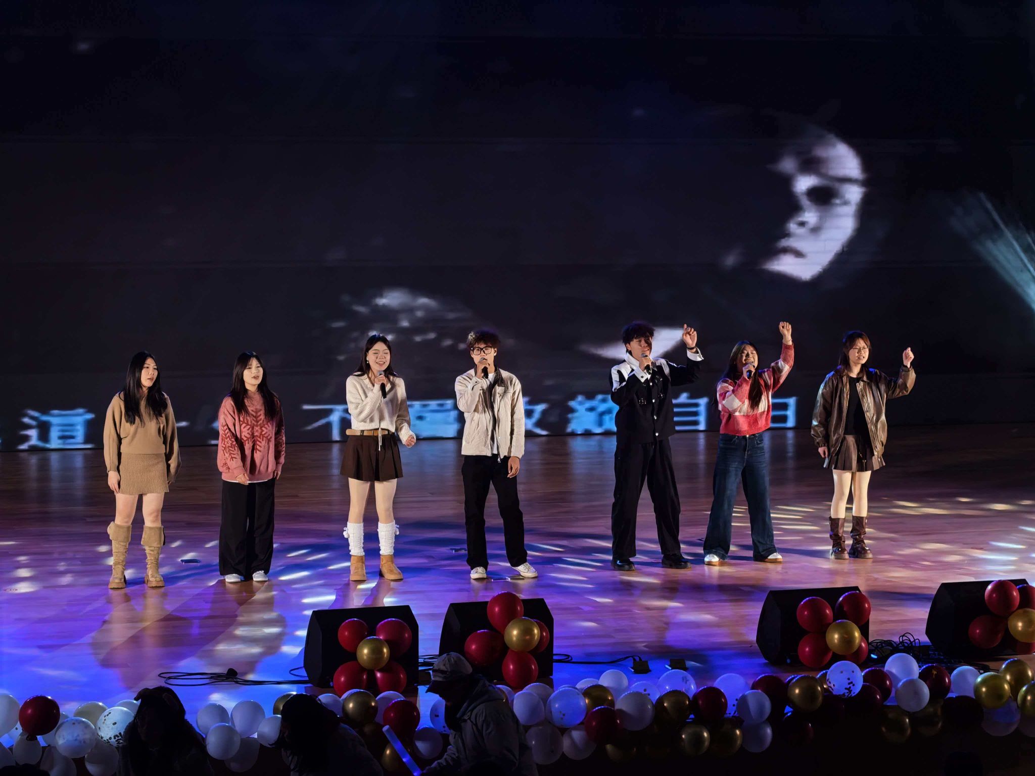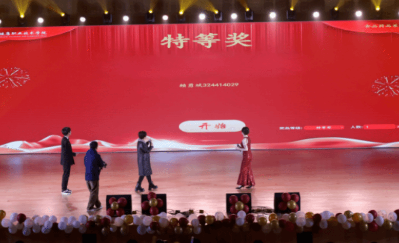 第三篇章“同心筑梦·奔赴未来”延续热血氛围。舞蹈《你要跳舞吗》节奏明快、活力四射,带动全场跟着节拍律动;小品《反诈联盟》紧跟社会热点,以寓教于乐的形式普及反诈知识,提高师生防范意识;歌曲《爱的回归线》旋律温柔、情感细腻,传递出温暖治愈的力量;抗日爱国话剧《忠骨所在之处,即是家乡》演绎了烈士坚贞不屈的感人故事,演员们真挚的表演让不少师生热泪盈眶,进一步激发了大家的爱国热情与使命担当。学校啦啦操队带来的《啦啦操花球技巧串烧》展现了高难度的技巧动作,整齐划一的舞姿与活力满满的状态赢得阵阵掌声。本篇章抽奖环节抽取一等奖20名,幸运获奖的师生脸上洋溢着幸福的笑容。
