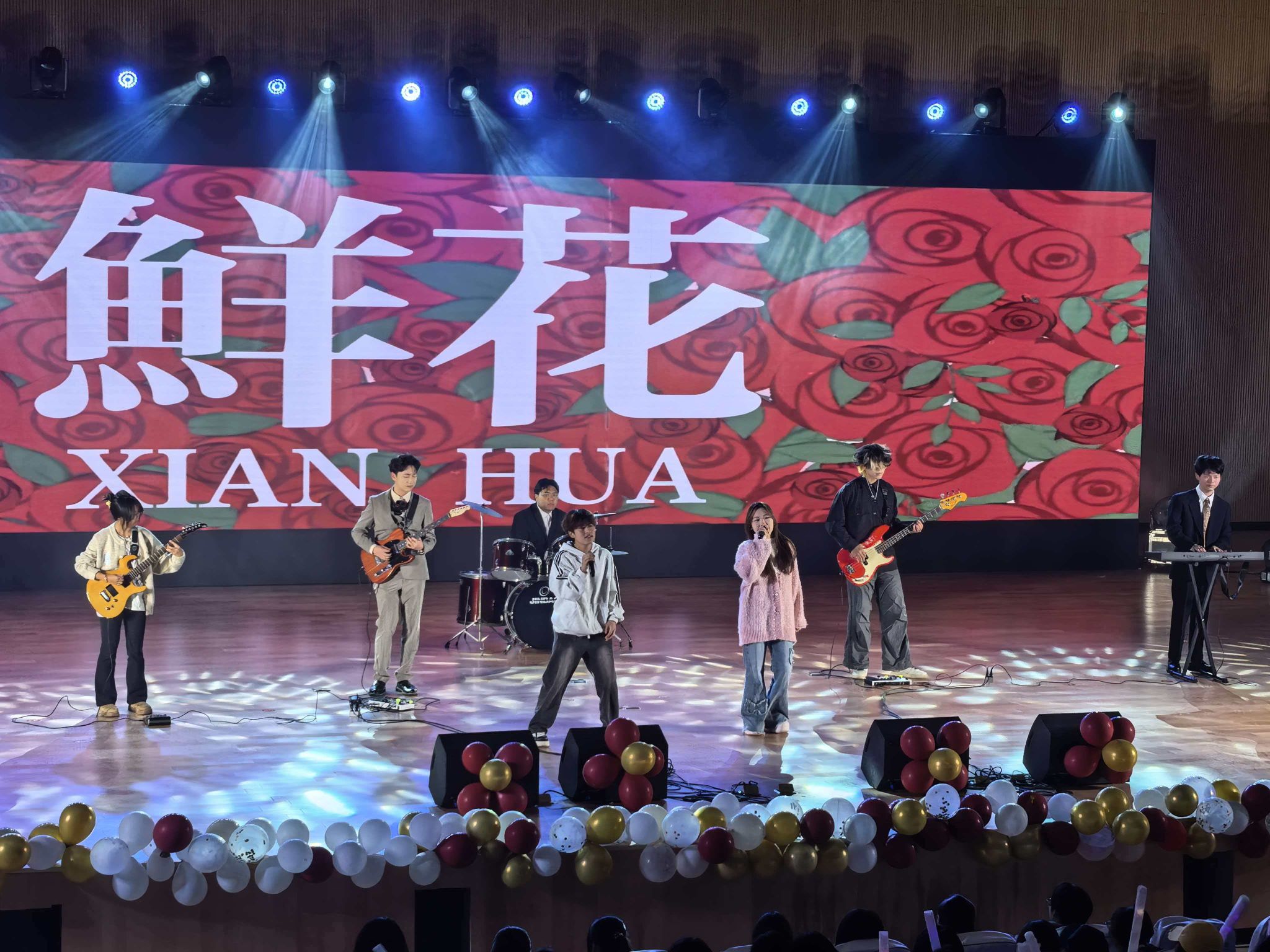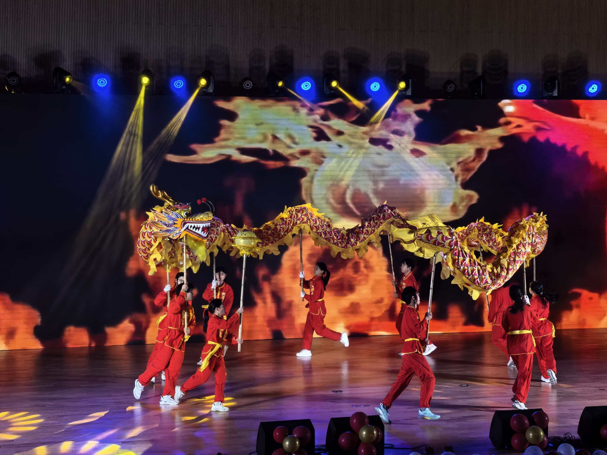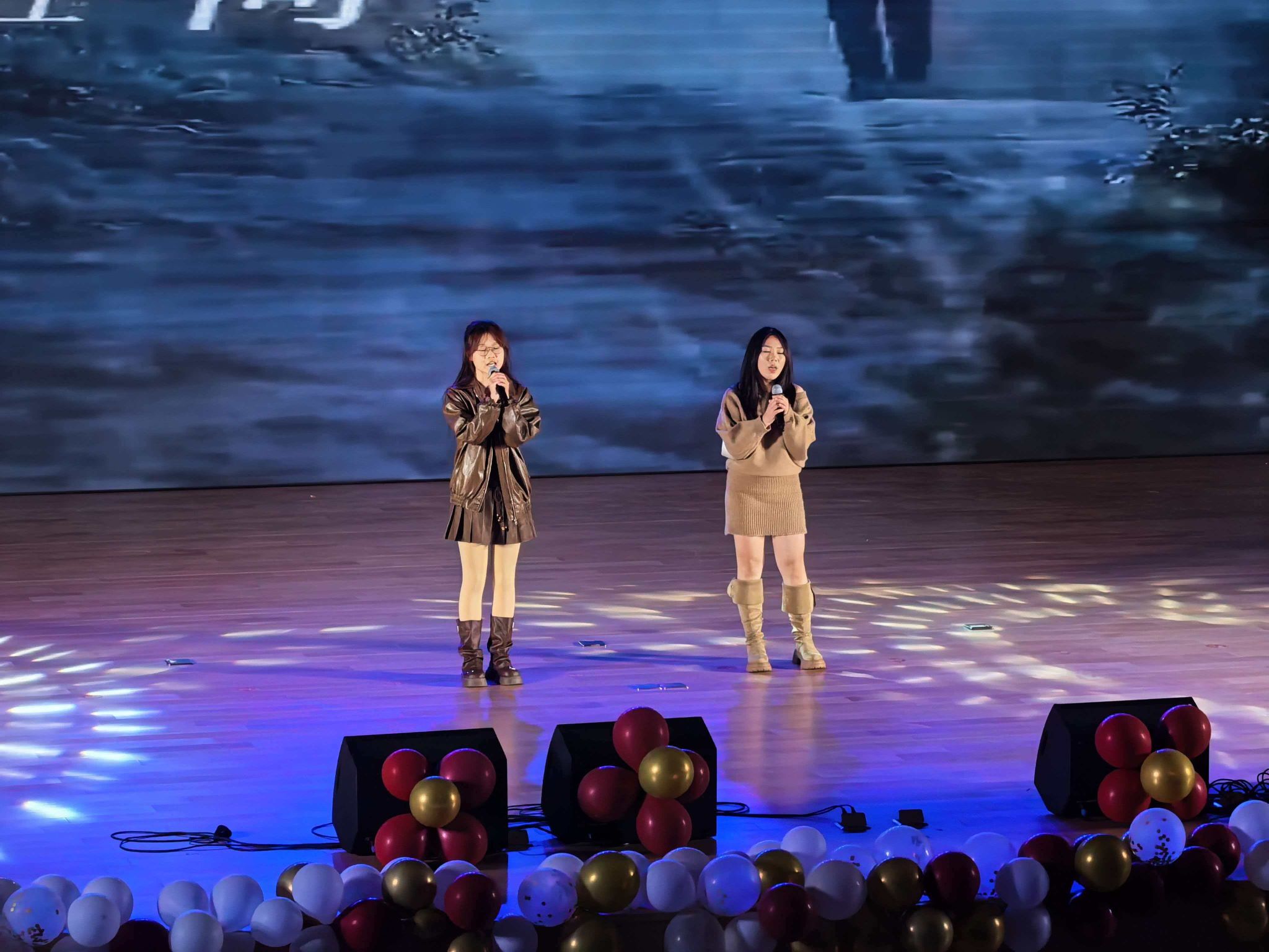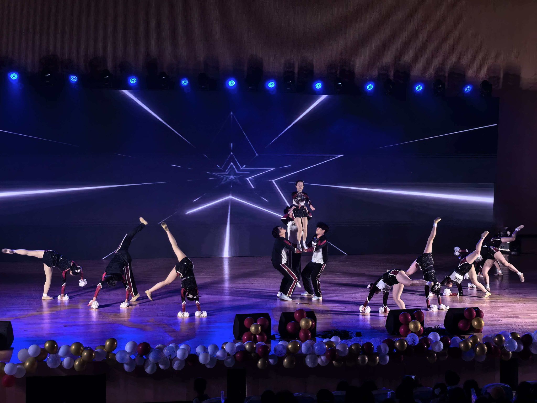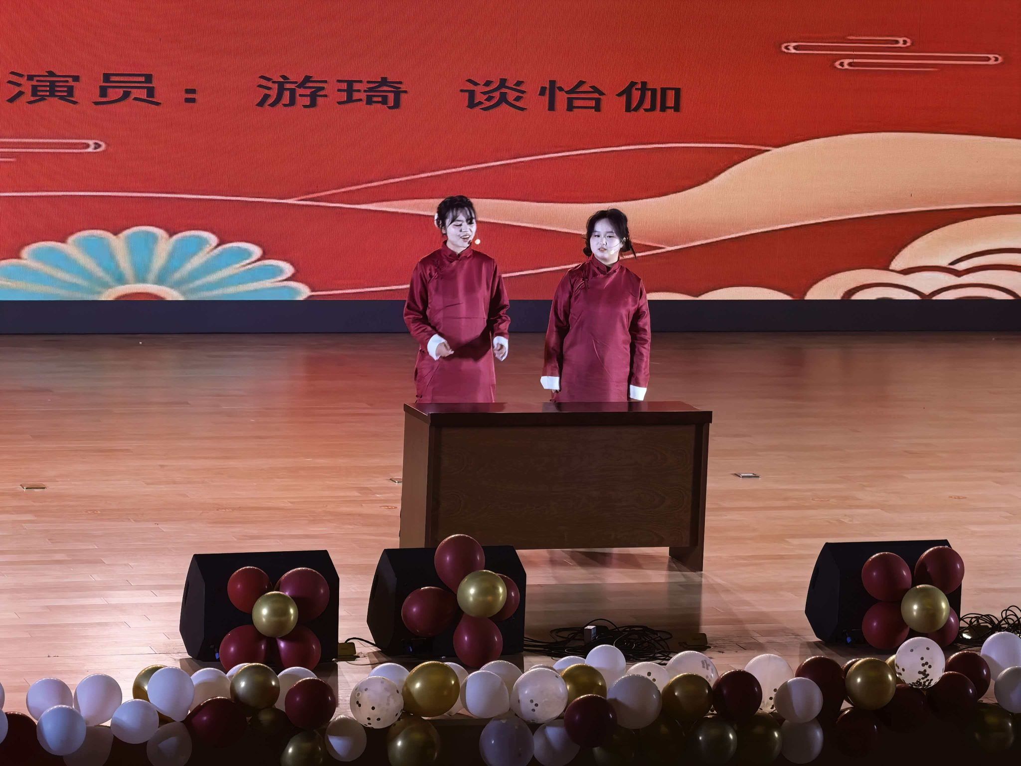 第三篇章“同心筑梦·奔赴未来”延续热血氛围。舞蹈《你要跳舞吗》节奏明快、活力四射,带动全场跟着节拍律动;小品《反诈联盟》紧跟社会热点,以寓教于乐的形式普及反诈知识,提高师生防范意识;歌曲《爱的回归线》旋律温柔、情感细腻,传递出温暖治愈的力量;抗日爱国话剧《忠骨所在之处,即是家乡》演绎了烈士坚贞不屈的感人故事,演员们真挚的表演让不少师生热泪盈眶,进一步激发了大家的爱国热情与使命担当。学校啦啦操队带来的《啦啦操花球技巧串烧》展现了高难度的技巧动作,整齐划一的舞姿与活力满满的状态赢得阵阵掌声。本篇章抽奖环节抽取一等奖20名,幸运获奖的师生脸上洋溢着幸福的笑容。