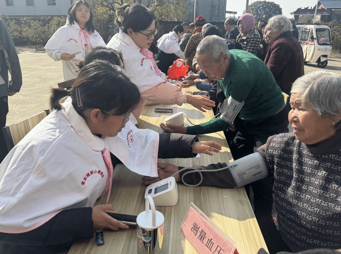活动当天,志愿者们在村内设立了临时义诊服务台,有序为老人开展量血压、测血糖、测尿酸等多项健康检查,并为老人提供心理咨询服务。针对部分指标异常的老人,志愿者耐心解释结果,细心叮嘱日常注意事项,并建议及时就医。所有检测数据均被认真记录,初步形成老人健康信息档案,为后续健康跟踪与服务提供了重要参考。