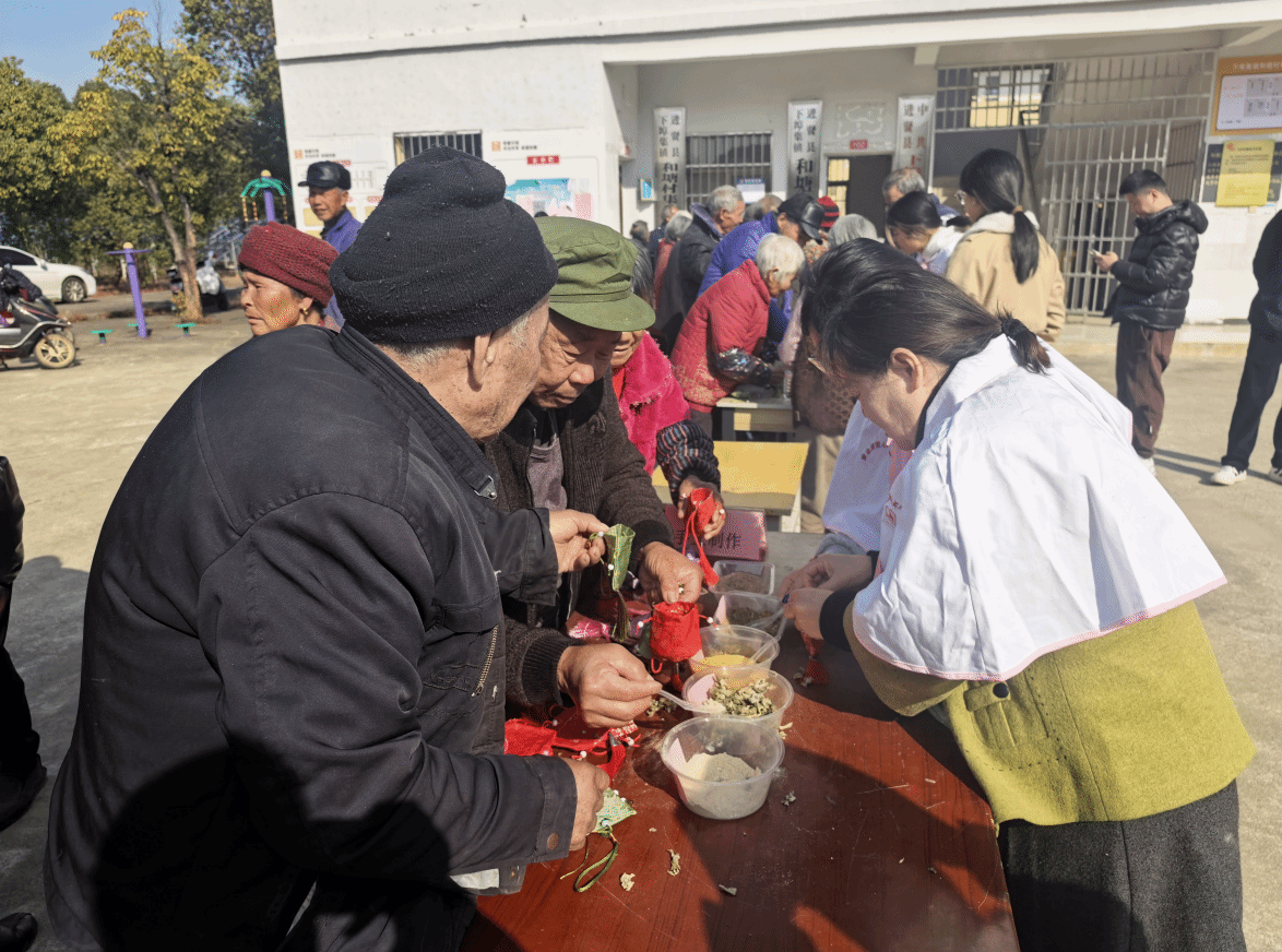 结合专业特色,志愿者们准备了中药材和香囊材料,现场指导老人制作防流感香囊。老人们一边动手,一边聆听志愿者讲解药材功效与冬季养生知识,活动现场气氛温馨融洽。志愿者们还围绕冬季高发疾病的预防、饮食起居注意事项等进行了通俗易懂的健康科普,帮助老人增强自我保健意识。