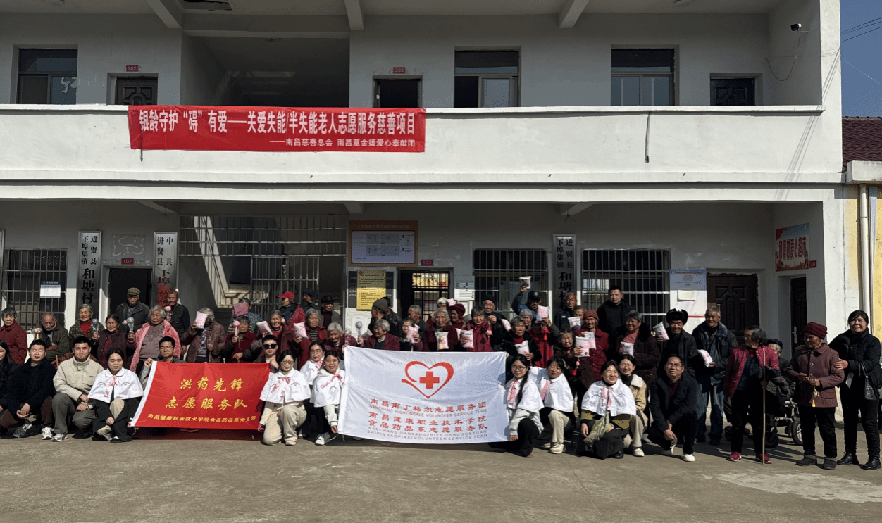 为深入践行“我为群众办实事”理念,弘扬中华民族尊老敬老传统美德,2026年1月8日,食品药品系党支部联合南昌慈善总会、南昌章金媛爱心奉献团,在党支部书记邓素萍的带领下走进进贤县下埠集镇和塘村,共同开展“银铃守护,‘碍’有爱--关爱失能/半失能老人”主题志愿服务活动,通过提供专业服务与暖心物资,为村内老人送去实实在在的关怀与温暖。