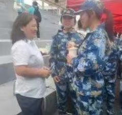 军训场上,除了教官的严格指导,更有系部的深切关怀始终围绕着新生。系党支部书记来到训练现场,询问新生“训练强度能不能适应”“生活上还需要什么帮助”,书记的关切问候让新生们感受到了家一般的温暖。而食品药品系的全体辅导员们,则化身“暖心守护者”,每日早出晚归,全程跟训、实时关怀。训练间隙,他们会随时关注学生的状态,看到有同学因长时间站立面露疲惫,或出现发烧、头晕等不适症状,会立刻上前,一边轻声安抚,一边从随身带的“关怀包”里掏出退烧贴、纸巾,细心为学生贴上退烧贴,帮他们擦去额头的虚汗,及时安排到阴凉处休息。不仅如此,辅导员们还会利用休息时间与新生谈心,了解他们的适应情况,解答关于大学生活的疑问。新生们纷纷表示,看到书记和辅导员老师一直陪着,哪怕晒黑了也没怨言,突然就觉得军训的累少了很多,心里特别踏实。