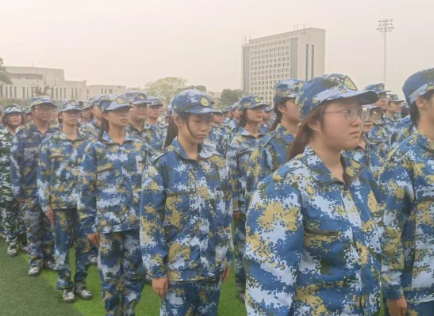 晨光熹微时,嘹亮的口号便划破校园的宁静;夕阳西下时,整齐的步伐仍在操场上回响。站军姿、练转体、走齐步、喊口号,每一个动作都凝聚着新生们的专注与坚持。汗水顺着脸颊滑落,浸湿了迷彩服的衣领,却从未浇灭眼中的坚定;反复纠正的动作、略带沙哑的指令,在教官的耐心指导与新生的咬牙坚持中,逐渐变得标准而整齐。这一方操场,不仅是锤炼体魄的“练兵场”,更是培育意志的“成长课堂”—— 从最初的略显生涩到后来的默契配合,从个体的独立训练到集体的协同进步,新生们在一次次重复与突破中,读懂了“坚持”的意义,体会了“集体”的力量。