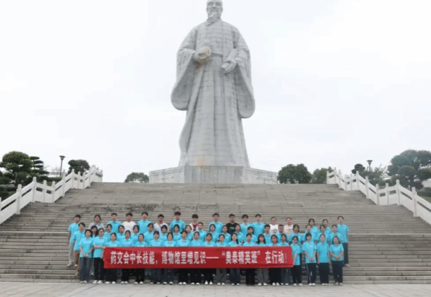 上午8:30,大巴车抵达樟树市岐黄小镇,刚走到岐黄小镇广场中心,一座高达33米的葛玄药师雕像就映入眼帘。雕像由青铜铸造,葛玄药师身着传统长袍,左手持药锄,右手托着一枚灵芝,面容慈祥而庄重,底座上刻着“葛玄药师”四个金色大字,旁边还有简短的文字介绍其在中医药领域的贡献。学生们纷纷停下脚步,抬头仰望雕像,不少人拿出手机拍照留念。系党支部书记走到雕像前,向学生们介绍:“葛玄是三国时期著名的医药学家,曾在樟树一带采药、炼丹,为中医药的发展作出了重要贡献,这座雕像也是为了纪念他对中医药事业的奉献。”随后,学生们围绕雕像缓缓行走,仔细观察雕像的细节,有的学生还结合课堂上学到的中医药历史知识,与同伴交流葛玄的医药成就,在感受雕像宏伟气势的同时,加深对中医药历史文化的理解。
