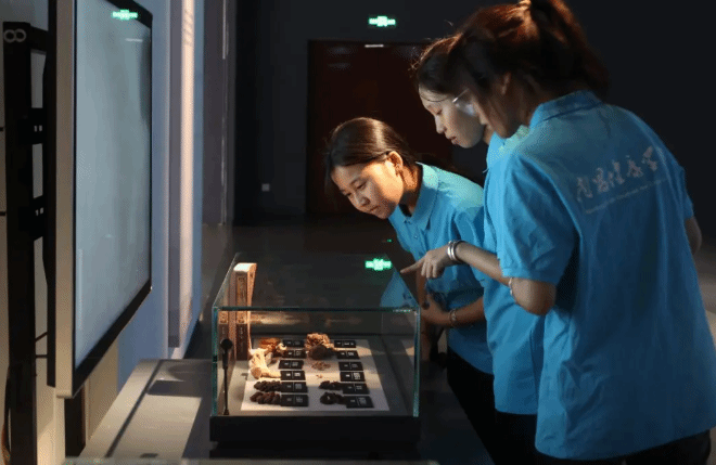 下午2点,研学队伍进入中国药都中医药博物馆。博物馆内分为“药之源”“药之灵”“药之光”三个展厅,每个展厅都通过实物、图片、多媒体等形式,展示中医药的发展历程。在“药之源”展厅,玻璃展柜里陈列着数十种中药材标本,从常见的当归、黄芪,到珍稀的人参、鹿茸,每一种药材都标注着名称、产地、功效等信息。学生们凑近展柜,认真观察药材的形态,有的还拿出手机扫描展柜旁的二维码,查看更详细的药材资料。在“药之灵”展厅,古代中医药典籍整齐地摆放在展架上,同学们仔细阅读上面的文字,感受古代医药学家的智慧。“药之光”展厅则展示了现代中医药产业的创新成果,从自动化的中药提取设备,到新型的中药制剂,让学生们直观看到中医药从传统走向现代的发展变化。学生们在展厅内有序参观,不时停下脚步交流感悟,有的还在笔记本上记录展品信息,在品读历史与科技融合的过程中,感受赣鄱大地中医药文化的深厚底蕴,为专业学习筑牢文化根基。