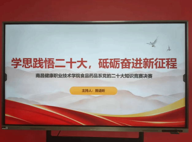 为深入学习贯彻党的二十大精神,推动理论学习走深走实、入脑入心,近日,食品药品系党支部开展的以“学思践悟二十大,砥砺奋进新征程”为主题的党的二十大知识竞赛圆满落幕。从初赛的群雄逐鹿到决赛的巅峰对决,全体参赛选手以赛促学、以学促行,在比拼中夯实理论根基,在交流中凝聚奋进力量,展现了新时代青年昂扬向上的精神风貌。