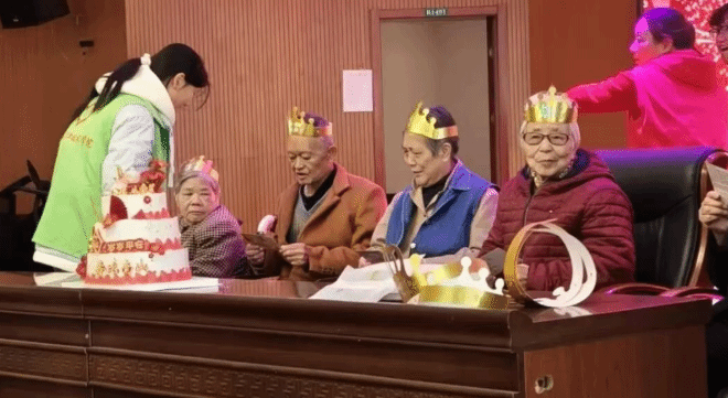 歌舞渐歇,温情未止。学子们俯身向前,将亲手书写的明信片一一赠予老人。笔迹或许稚嫩,字句却诚挚动人:“祝爷爷安康如意,笑口常开”“愿奶奶岁月静好,福寿绵长”。老人们捧着卡片,反复端详,笑意染眉梢。随后,庆生蛋糕被缓缓推出,烛光摇曳,蛋糕飘香。在《生日快乐》的合唱中,志愿者们小心翼翼为寿星们分切蛋糕,并俯身送上祝福。甘甜在舌尖化开,更甜的是心间暖流。