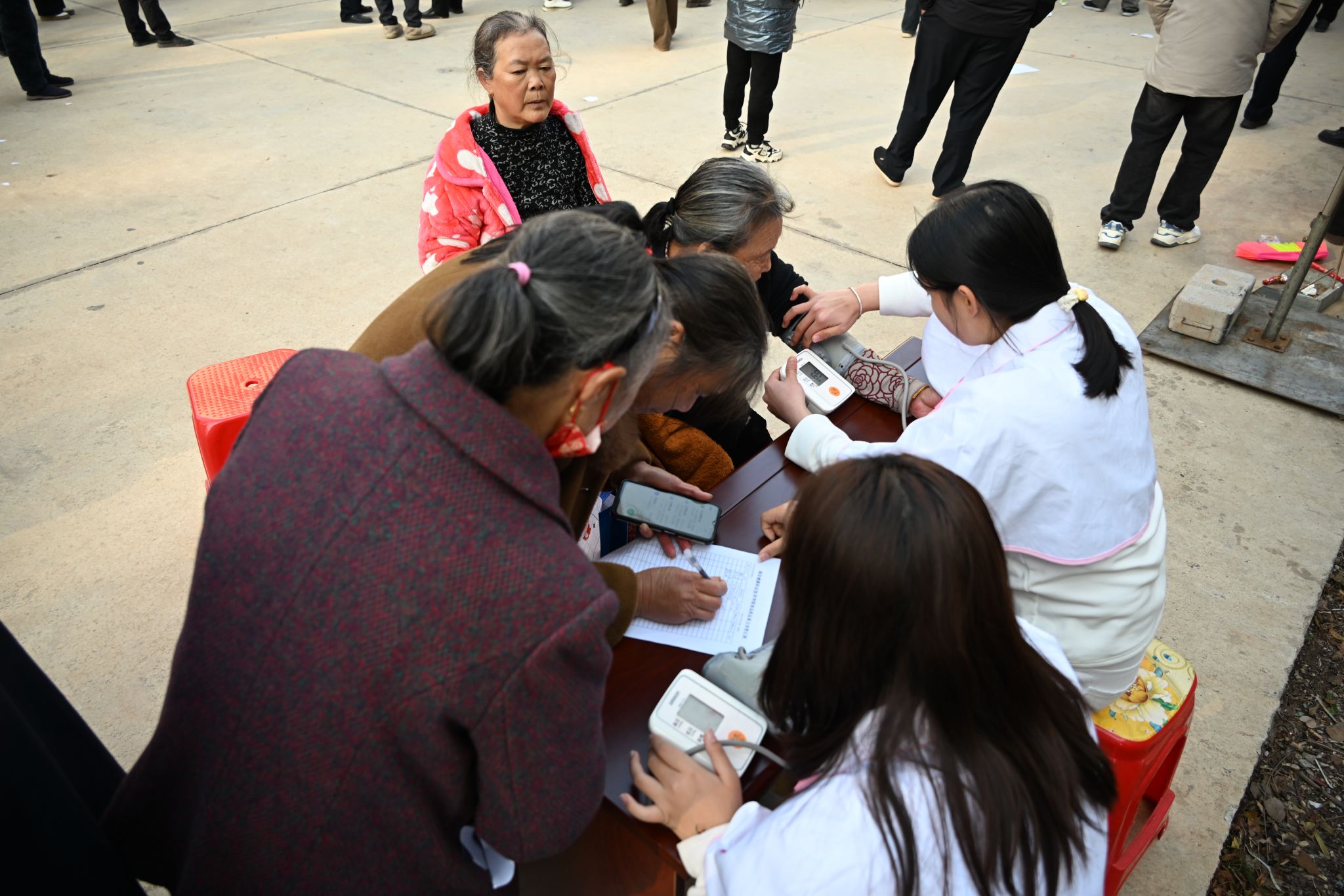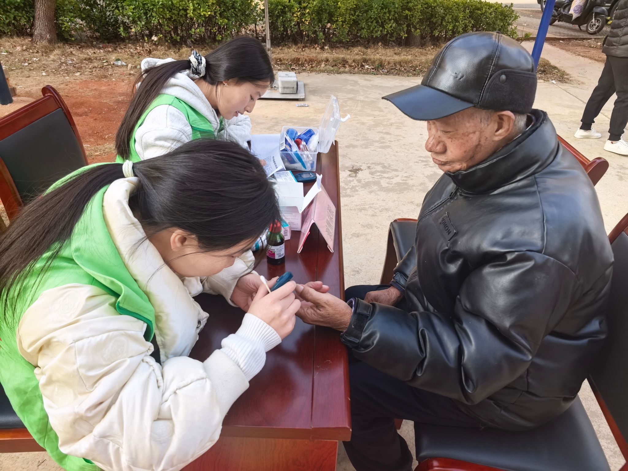 本次志愿服务由食品药品系党支部书记带队,活动当天,2025级中药学6班团支部及系学生会学员组成的志愿服务队抵达中堡村委会,迅速布置好场地并投身志愿服务。