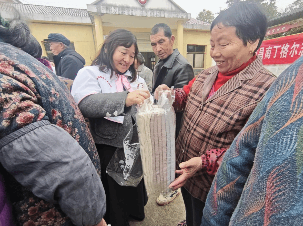 “邓书记,你们又来啦,真好!” 见到熟悉的面孔,村民们热情招呼。邓素萍一边为大家分发毛巾,一边与村民亲切交谈,详细了解他们的生活和健康状况。她代表食品药品系党支部,为村民送上这份实用的生活用品,物件虽普通,却饱含温情,传递着党组织对基层群众的真切关怀。