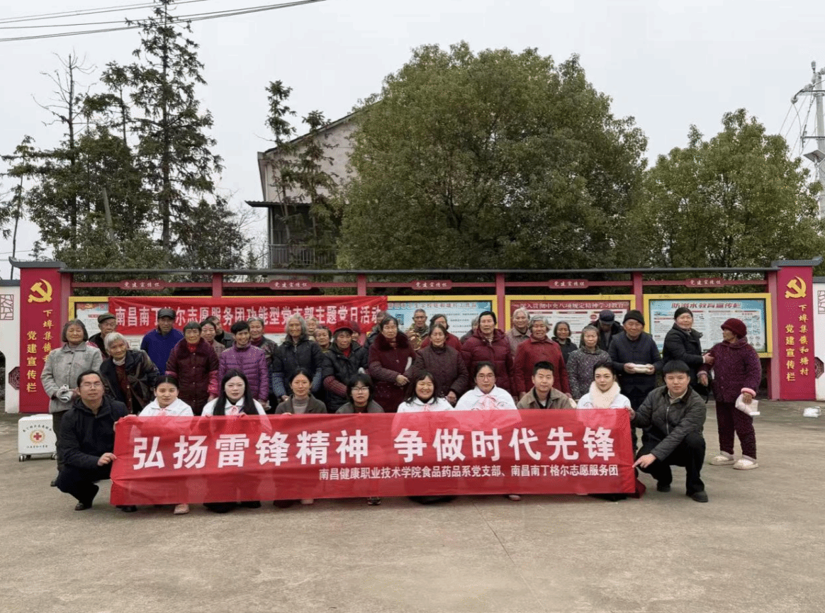 2026年3月5日,正值第63个学雷锋志愿服务日。在这个春意初萌、爱心涌动的日子里,南昌健康职业技术学院食品药品系党支部携手南昌南丁格尔志愿服务团,走进学校定点帮扶村——进贤县下埠集镇和塘村,开展“弘扬雷锋精神,争做时代先锋”主题志愿服务活动,以实际行动书写新时代的雷锋故事。