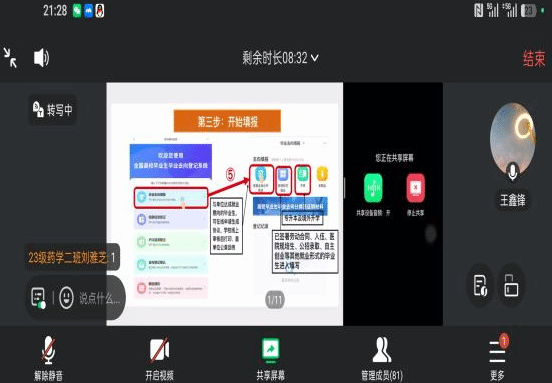 在家校社协同线上家长会上,各辅导员结合班级学生实际,围绕毕业生就业形势、职业规划、求职技巧及家校协同发力要点,与家长们展开深入交流,凝聚家校育人合力。1月31日,2023药学4班辅导员卢元元以“职引药途”为主题,为家长解读药学专业就业方向、行业发展趋势,引导家长树立科学的就业观,主动配合学校做好学生就业引导工作.2月27日,2023药学2、3班辅导员王鑫锋以“携手规划未来,共筑职业梦想”为主题,与家长们探讨如何精准对接学生职业需求,助力孩子明确就业目标、缓解就业焦虑。2月13日,2024药学1班辅导员徐克寒以“携手助力,启航未来”为主题,围绕实习与就业的衔接、求职准备等内容与家长沟通,凝聚家校协同促就业的强大合力。3月2日,2023药学1班辅导员章凯凯以“携手助力铺就孩子职业发展之路”为主题,分享学生就业进展,倾听家长诉求,为家长提供针对性的就业指导建议,引导家长主动关心、支持孩子的就业选择,共同为孩子的职业发展保驾护航。