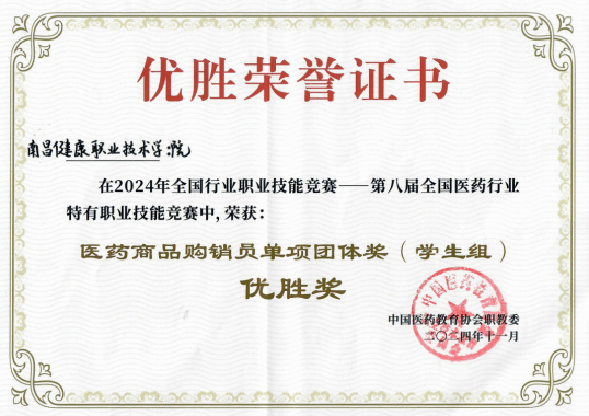 (二)组织荣誉:药品购销员单项团体奖(学生组)优胜奖
